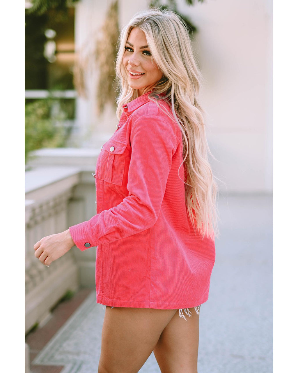 Pink Buttoned Flap Pocket Corduroy Jacket - M