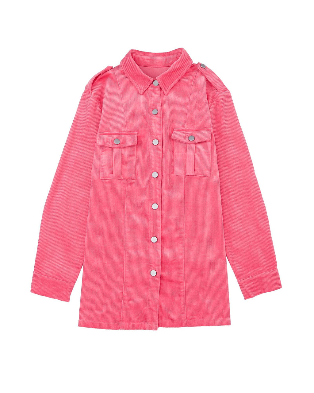 Pink Buttoned Flap Pocket Corduroy Jacket - XL