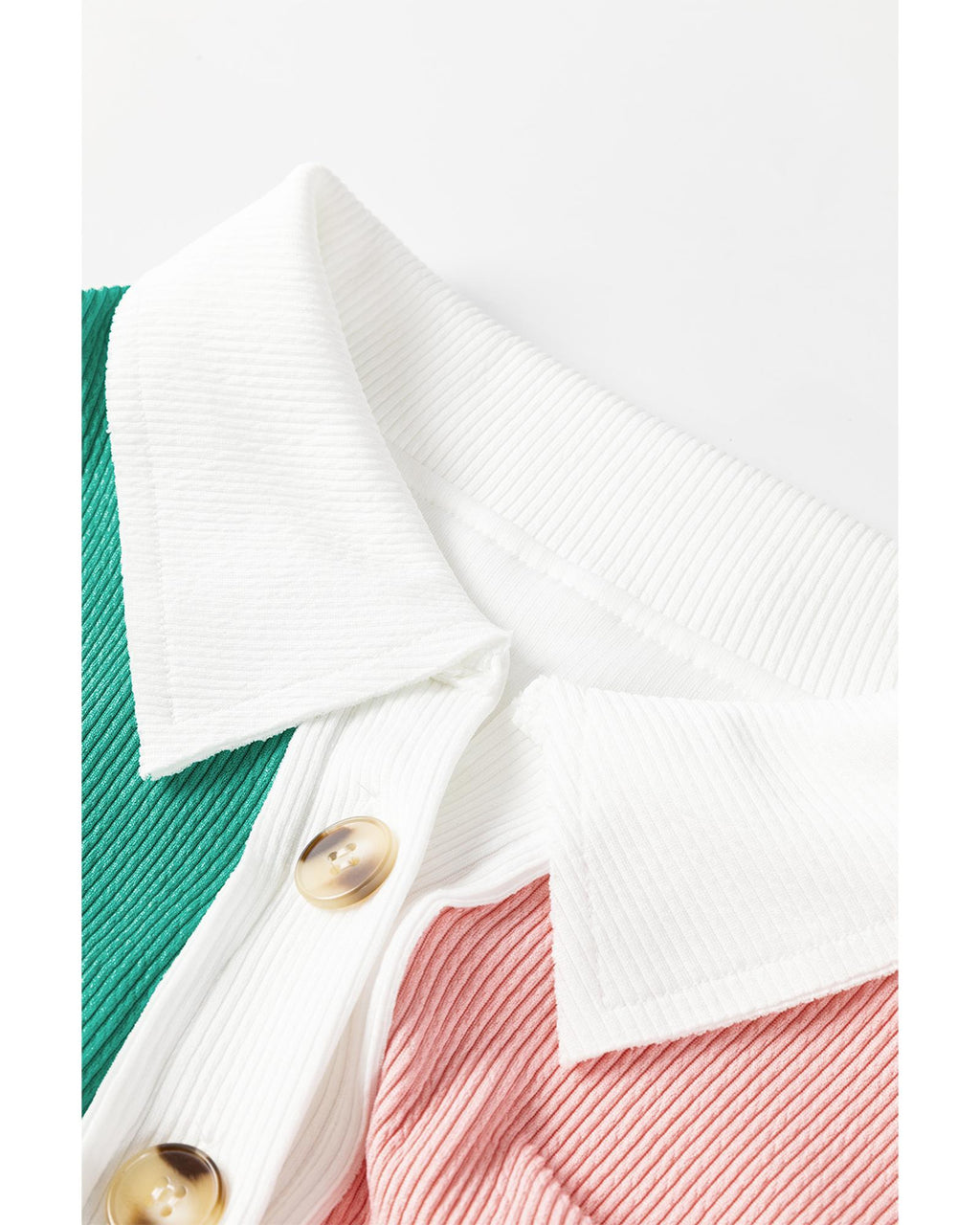 • Pink Colorblock Ribbed Collared Oversized Sweatshirt
