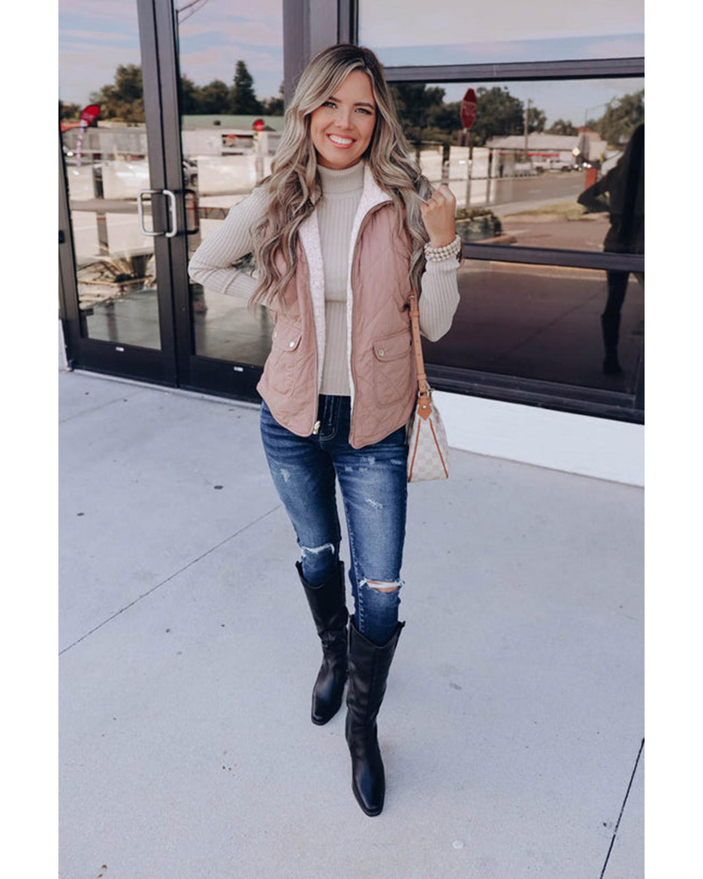 Pink Fleece Lined Quilted Vest Coats - XL