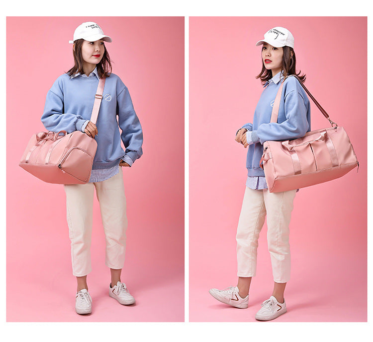 Pink Large Capacity Travel Duffel Bag – Wet & Dry Separation, Shoe Compartment, and Luggage Sleeve for Gym, Yoga, and Short Trips