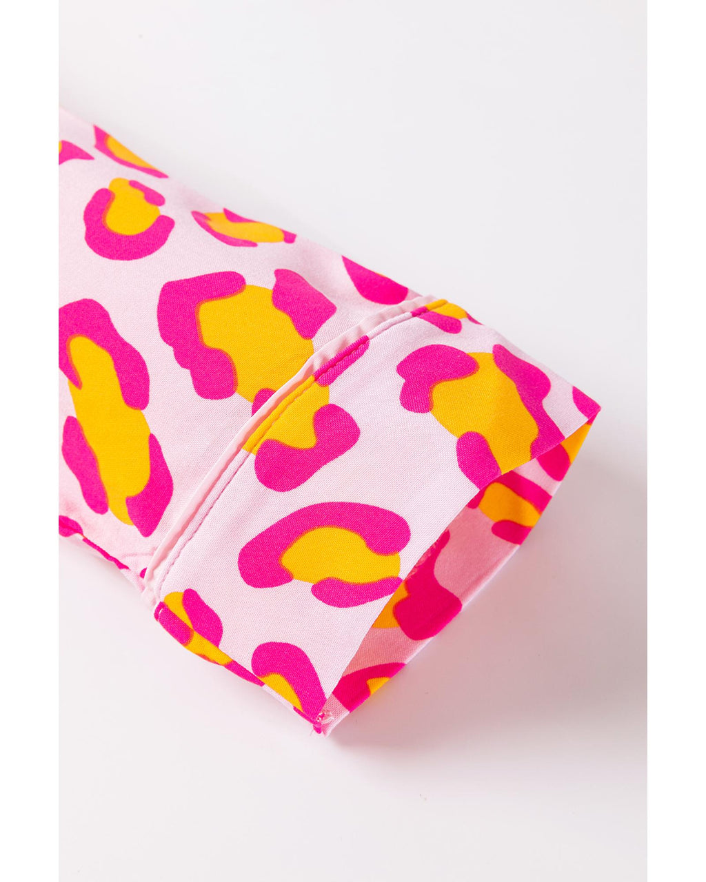 Pink Leopard Print Long Sleeve Shirt and Shorts Pajama Set - L