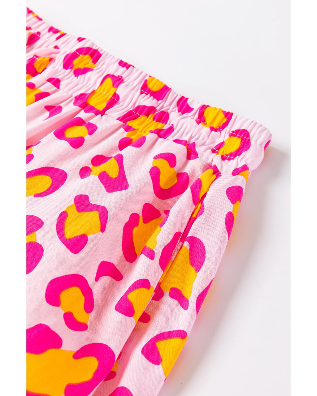Pink Leopard Print Long Sleeve Shirt and Shorts Pajama Set - M