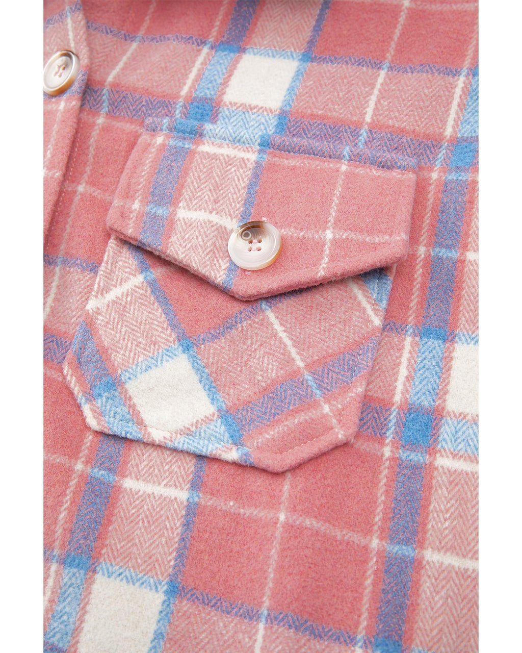 • Classic Pink Plaid Flap Pocket Button Up Shacket