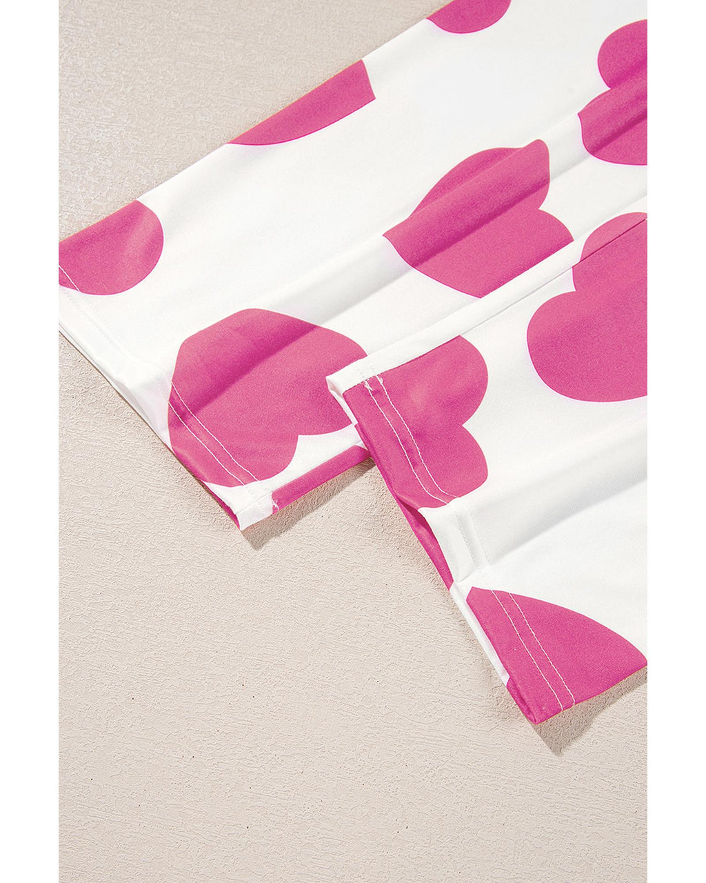 Pink Ruffled Tank Top And Heart Print Pants Lounge Set - XL