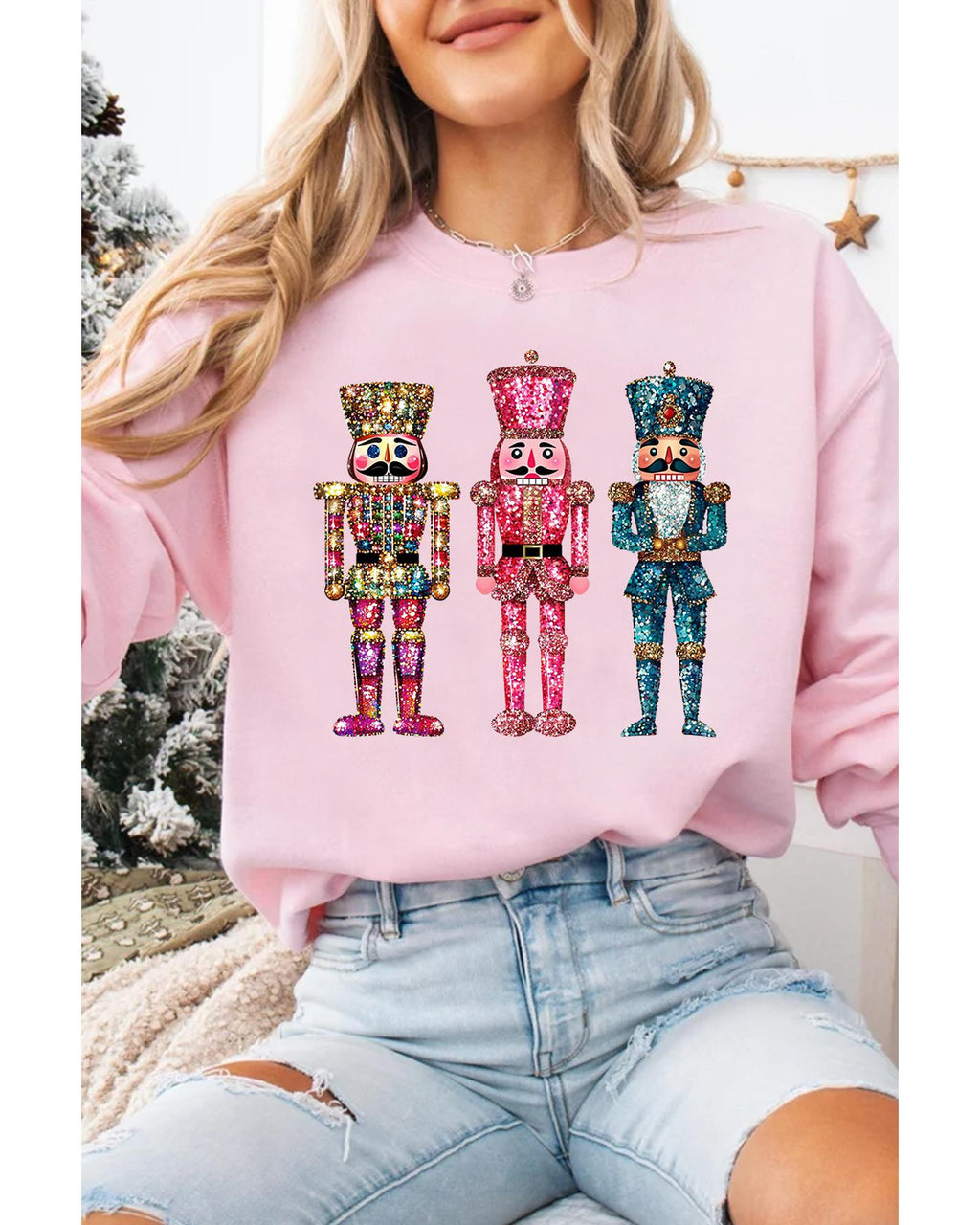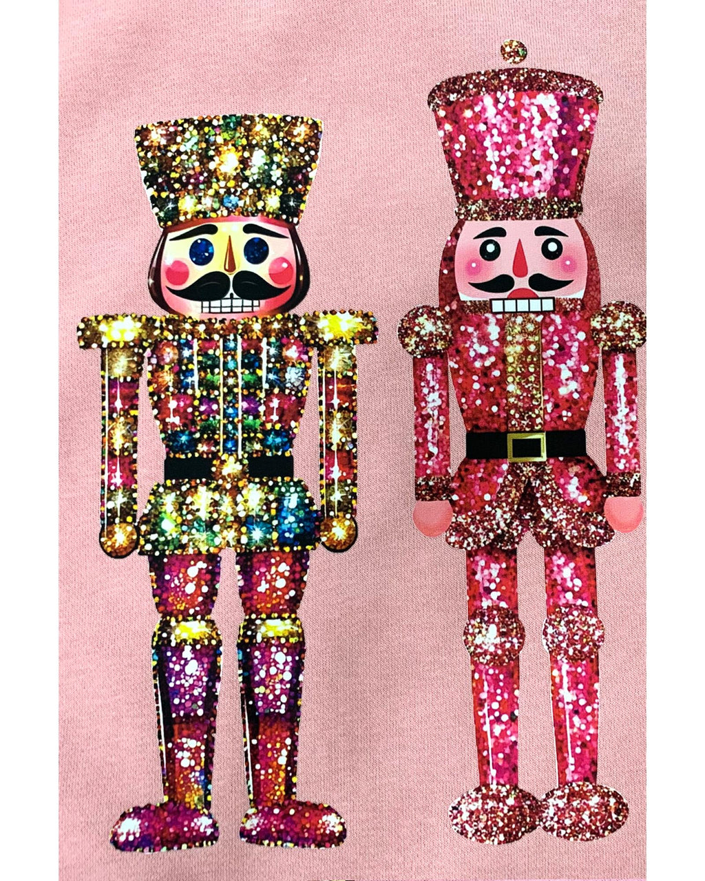 Pink Shimmer Nutcracker Graphic Christmas Pullover Sweatshirt - M
