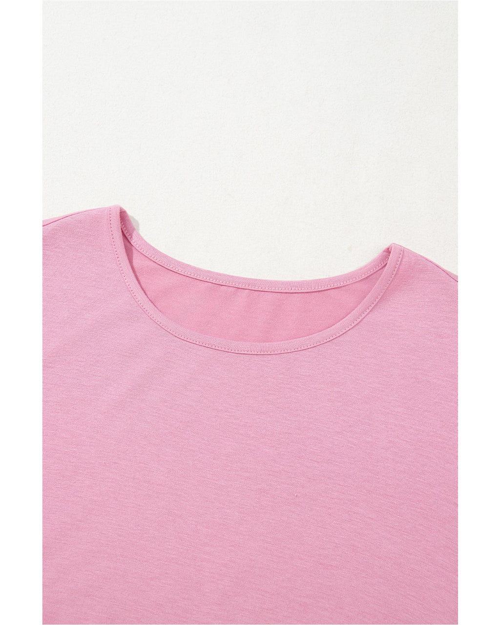Pink Solid Color T-shirt High Waist Pocketed Long Dress - M
