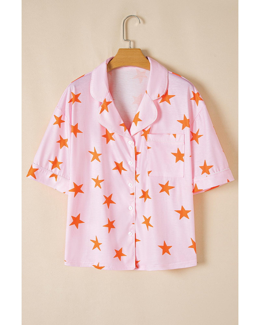 Pink Stars Short Sleeve Shirt and Shorts Bamboo Pajama Set - XL