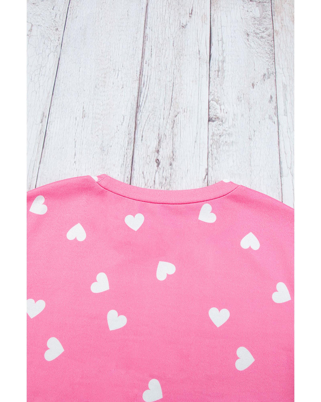 • Pink Valentine Heart Print Long Sleeve Tee and Shorts Lounge Set