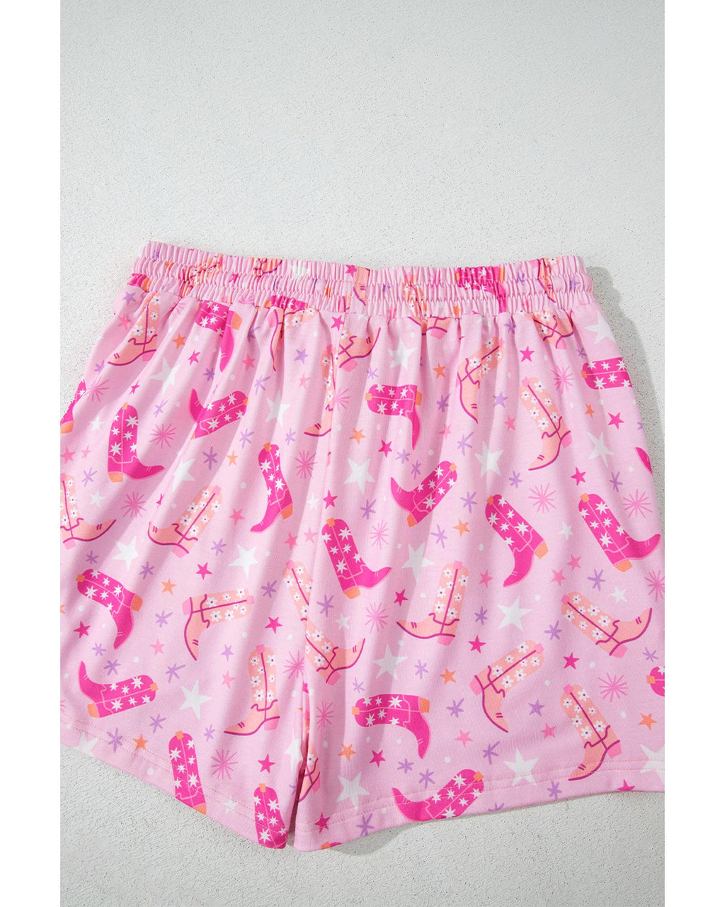 Pink Western Boots Printed Short 2pcs Lounge Set - XL