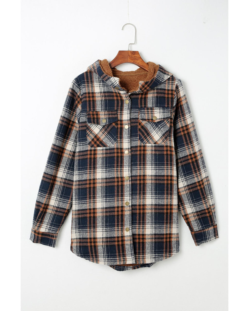 Plaid Pattern Sherpa Lined Hooded Shacket - L