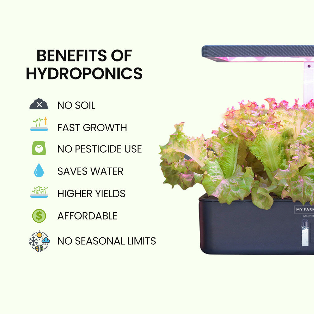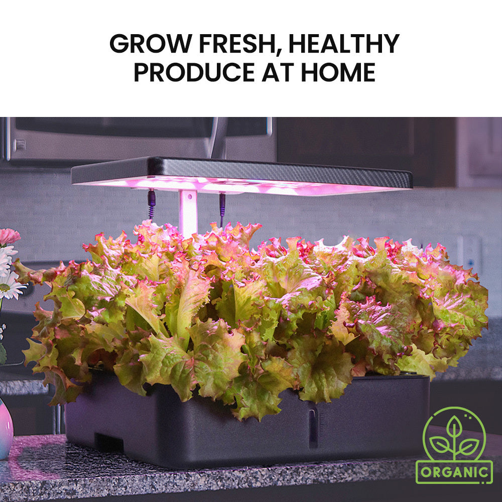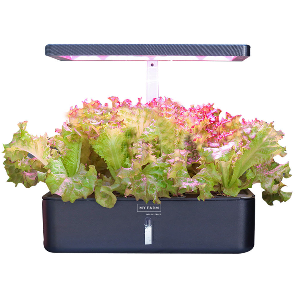 The MY FARM 12 Pod Indoor Hydroponics Growing System is an elegant addition to any home decor, allowing you to grow plants indoors at a 30-50% faster rate than conventional soil planting. With high performing automatic LED lights and a quiet auto water circulation system, you can conveniently produce freshly grown veggies, fruits and herbs in no time.