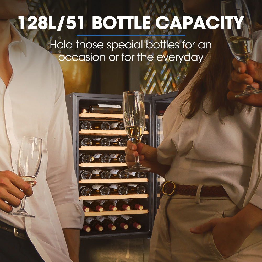 The PolyCool Noir Plus 128L/51 Bottle Wine Chiller Fridge has everything you need to enjoy refreshing and chilled wine anytime. This wine cooler has the latest direct compressor technology to keep the temperature perfect for your favourite vintage. The generous 128L capacity means you'll have more than enough room to store your best vintages. It has sliding shelves to make sure your favourite varietals are handy. The shelves are also removable so you can chill large format bottles. The PolyCool Noir Plus makes sure you are ready for any special occasion,big or small or your regular “Wine O’clock”.