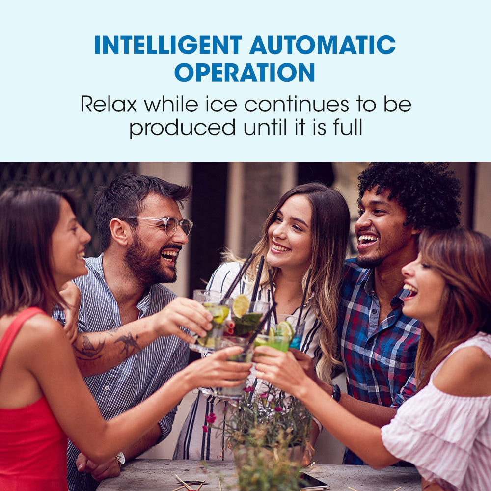 Simply kick back and enjoy the festivities as Polycool silently does its thing, as you’re safe in the knowledge that advanced sensor technology pauses production when the container is full. There’s a practical inspection window and an intuitive LCD control panel which provides full-container and low-water indication. You can also select from three ice bullet sizes, so that you and your guests can have the best drinking experience.