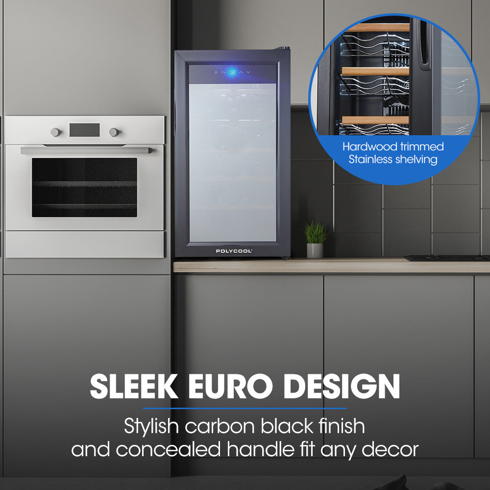 The PolyCool Noir 18 Bottle Countertop Wine Chiller Fridge is everything you need to enjoy your favourite vintages anytime. With an ample 47L capacity, you'll be ready for any special occasion be it big or small, or just wine o’clock on a regular day.