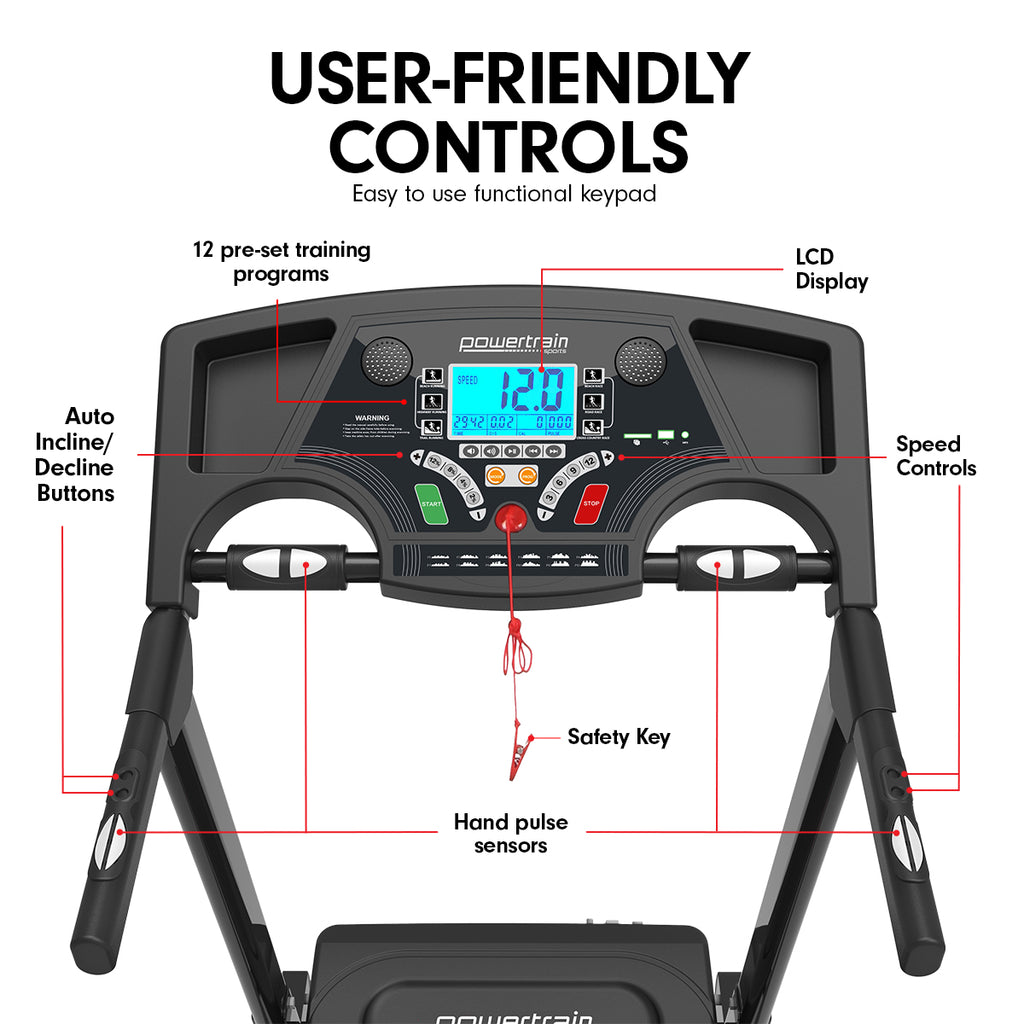 The blue LCD screen provides all the essential stats, including speed, time, distance, calories burned, and pulse. You can also rotate between the 12 pre-set training programs and add variety to your runs.