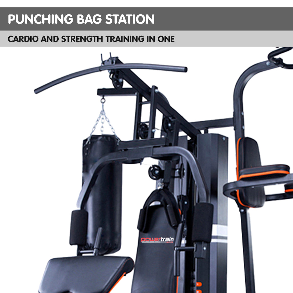 Powertrain Multi Station Home Gym 158lb Weights Punching Bag