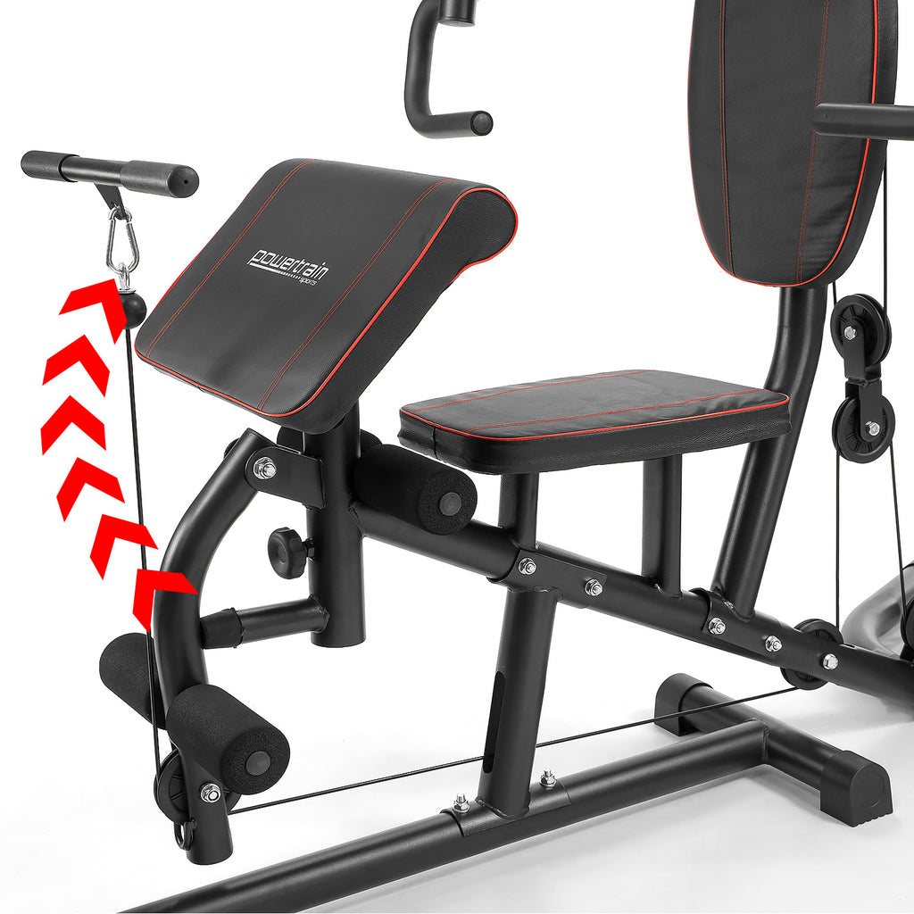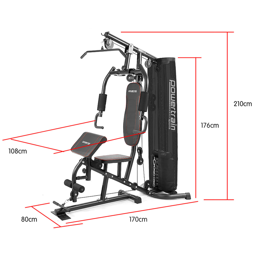 It's sturdy design makes it durable and padding is designed to keep you comfortable. Built to last from heavy gauge powder-coated steel, this attractive multi station home gym from PowerTrain will make your home gym look like the real deal.