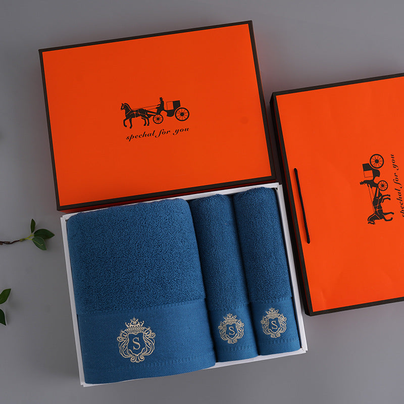Premium Absorbent Cotton Towel Set - Soft Bath & Hand Towels with Double-Sided Plush(blue)