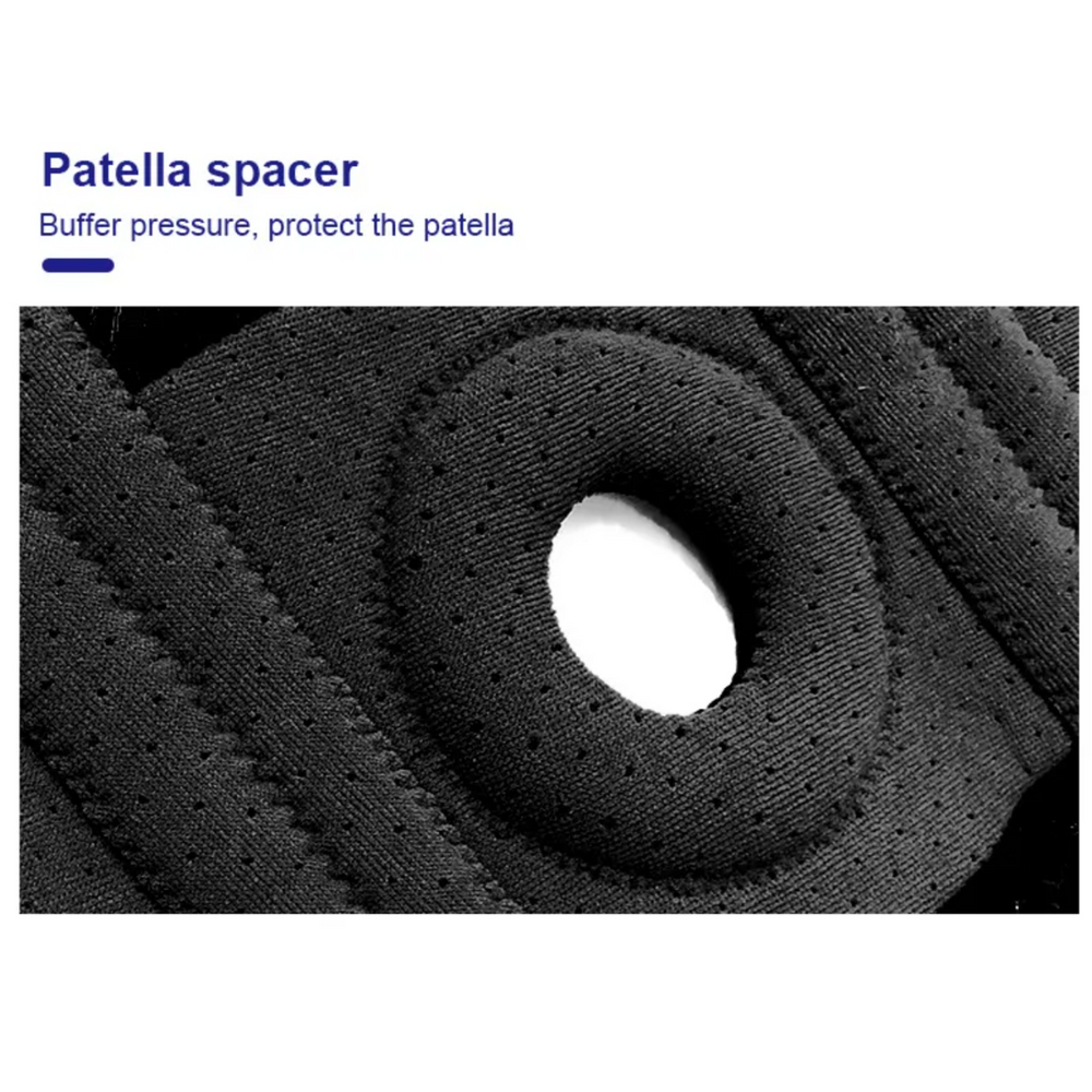 A knee brace crafted from breathable neoprene is designed to aid individuals who experience chronic or acute knee problems, including arthritis, ligament damage, and post-surgery recovery. The brace, which is made from a pliable and ventilated neoprene material, ensures a comfortable and secure fit. The open-patella design allows for unrestricted movement of the knee, promoting healing and improved function