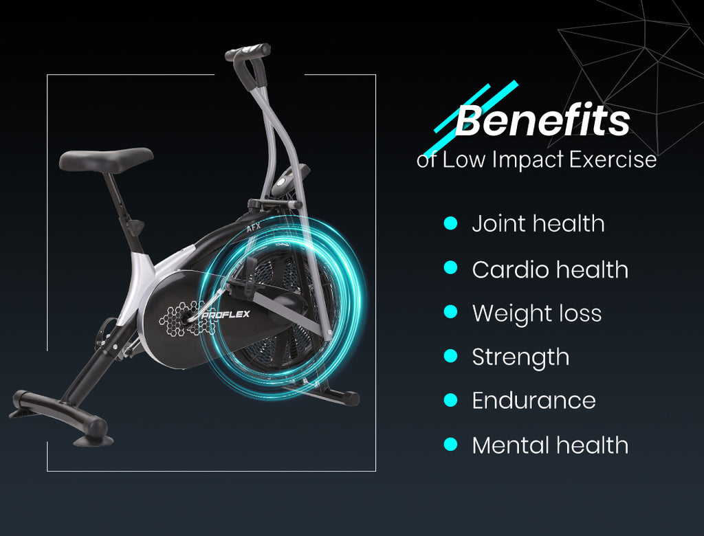 The versatile Proflex AF1 Air Bike allows you to have a low impact upper and lower body workout in one machine. The bike's ergonomic design engages your arms and upper body for a true full-body HIIT style workout that combines cardio and strength training for fast results. And, with its fan flywheel your sure to keep you cool while working up a sweat!