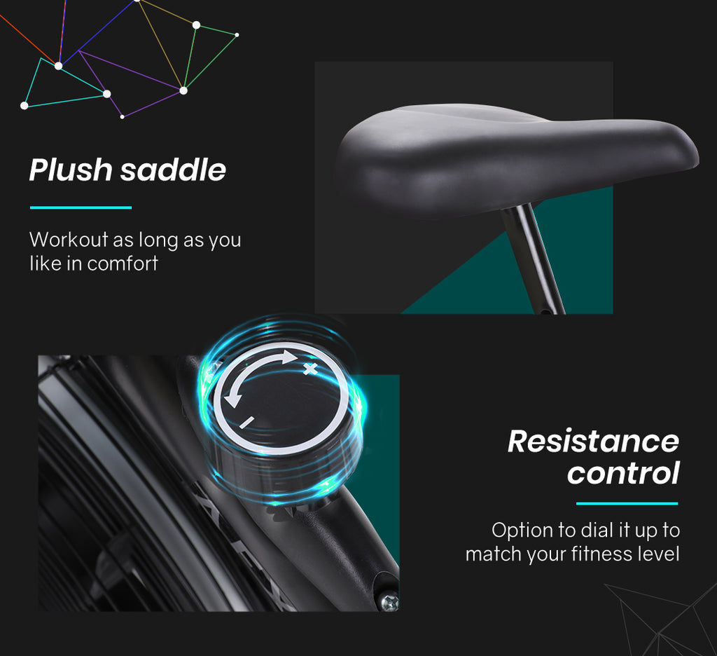 The fan flywheel keeps you cool while you work up a sweat.