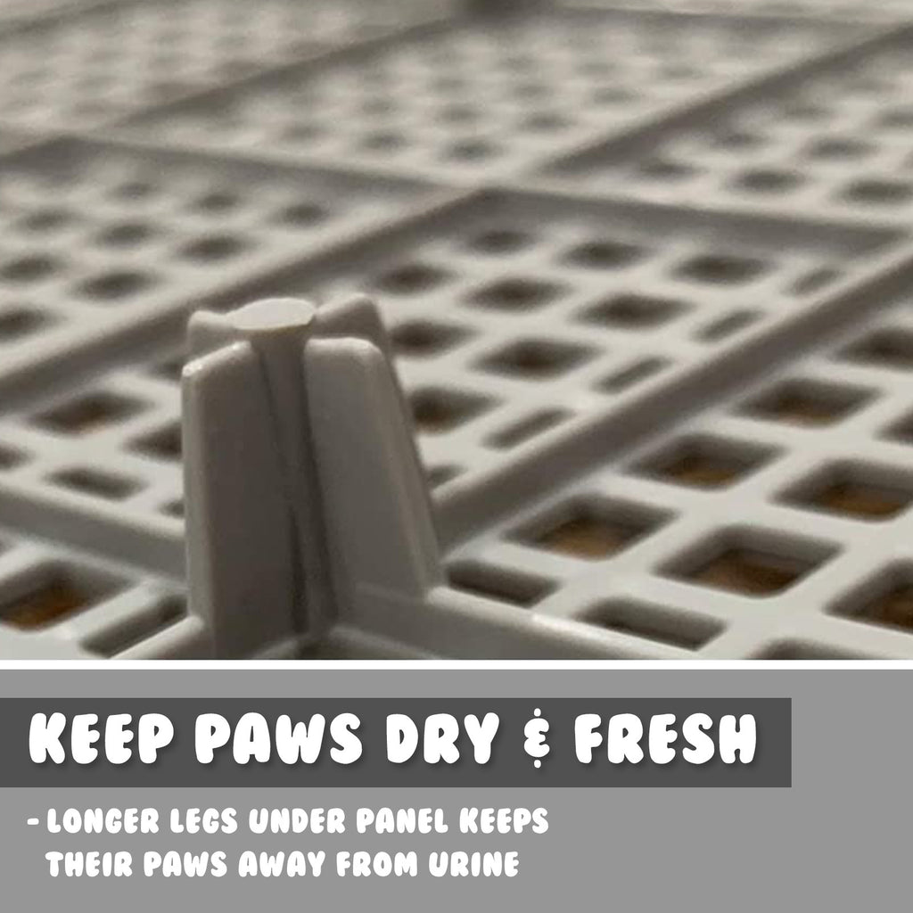 KEEP THOSE PUPPY PAWS FRESH: Perforated grate/mesh panel allows pee to flow down to your own pads underneath, and the panel legs are long to keep paws almost dry.