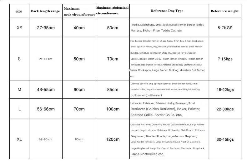 Important Sizing Note: Please measure your dog's back length and chest girth before ordering to ensure the perfect fit. Refer to our sizing chart for detailed measurements.