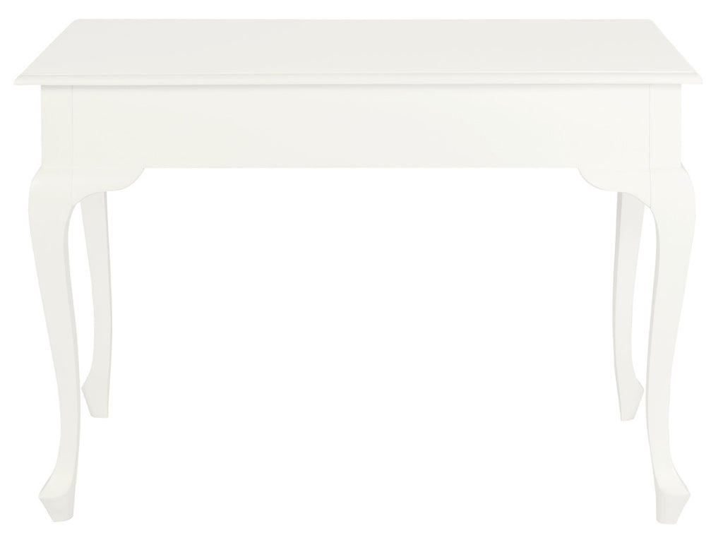 The Queen Anne 2 Drawer Desk is an embodiment of sophistication and functionality, crafted from solid mahogany timber and finished with solid brass for a touch of understated opulence. Measuring 105.0 cm in length, 60.0 cm in width, and 75.0 cm in height, it offers ample workspace without demanding too much room. Ready to use with no assembly required, it comes in a variety of finishes: rich Chocolate, warm Light Pecan, classic Mahogany, pure White, and a delicate White Caramel, providing options to perfectly match any decor scheme. The desk's design aesthetic is deeply rooted in the timeless Queen Anne style, featuring graceful curves and elegant, slender legs that convey a sense of refined luxury. The two drawers provide discreet storage, maintaining the sleek silhouette while keeping essentials close at hand. This desk is not merely a piece of furniture but a statement of elegance that enhances the sophistication of your workspace.