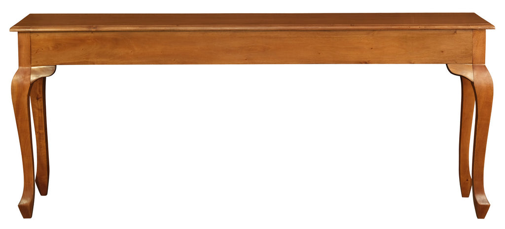 Elevate your living space with the refined elegance of the Queen Anne 3 Drawer Sofa Table. Measuring 180.0 x 35.0 x 76.0 cm and crafted from solid mahogany timber, this sofa table offers both sophistication and practicality. The classic Queen Anne style, paired with three spacious drawers, provides an ideal blend of form and function for your living room, entryway, or hallway. Available in five stunning finishesChocolate, Light Pecan, Mahogany, White, and White Caramelthis versatile piece complements both traditional and modern décor effortlessly. Whether its a stylish accent in a contemporary home or a functional addition to a classic setting, this table adapts seamlessly to various interior styles.