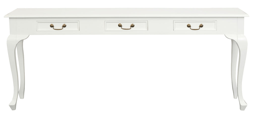 Elevate your living space with the refined elegance of the Queen Anne 3 Drawer Sofa Table. Measuring 180.0 x 35.0 x 76.0 cm and crafted from solid mahogany timber, this sofa table offers both sophistication and practicality. The classic Queen Anne style, paired with three spacious drawers, provides an ideal blend of form and function for your living room, entryway, or hallway. Available in five stunning finishesChocolate, Light Pecan, Mahogany, White, and White Caramelthis versatile piece complements both traditional and modern décor effortlessly. Whether its a stylish accent in a contemporary home or a functional addition to a classic setting, this table adapts seamlessly to various interior styles.