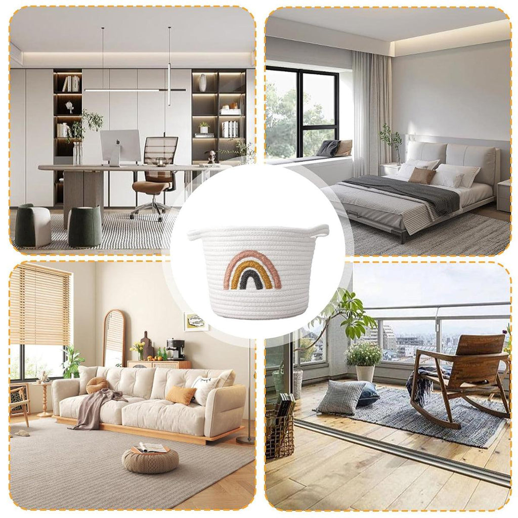 Rainbow Cotton Rope Storage Basket Handheld Desktop Organizer Large Basket