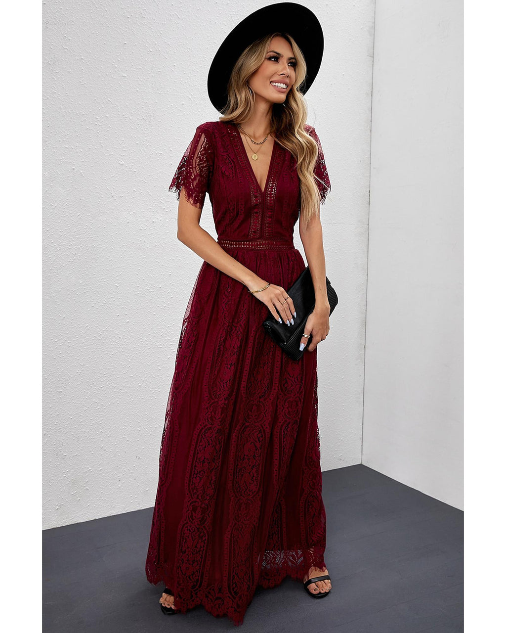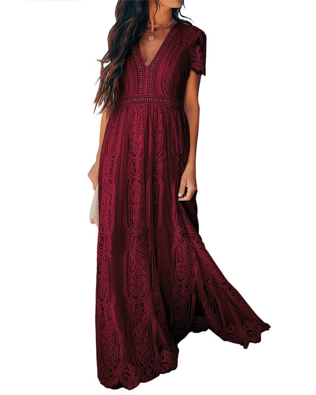 Red Blue Fill Your Heart Lace Maxi Dress - S