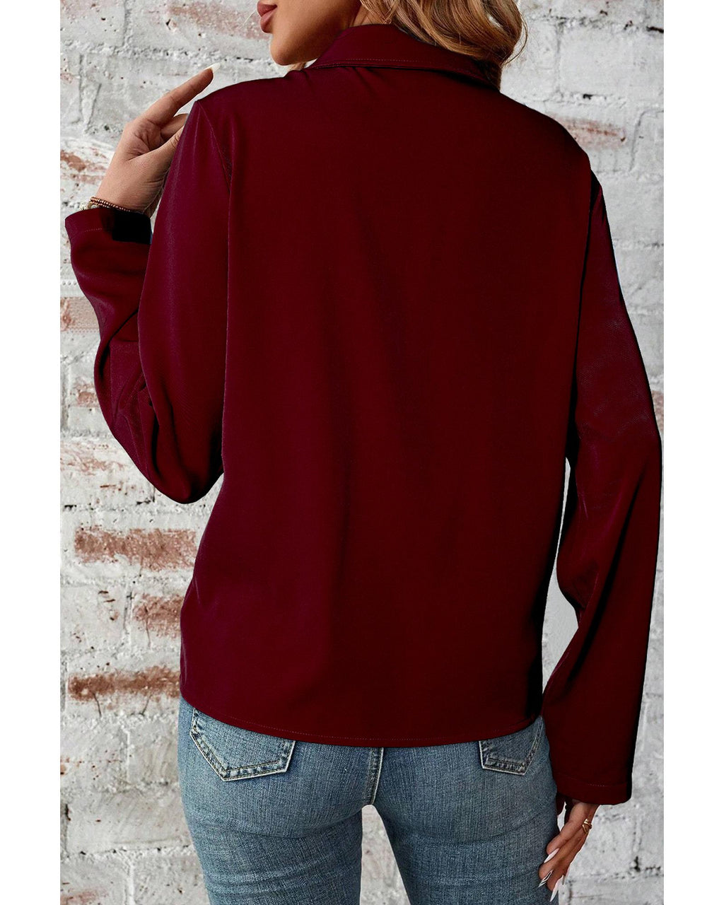 Red Dahlia Collar Tab Sleeve Zip Up Flap Detail Jacket - XL