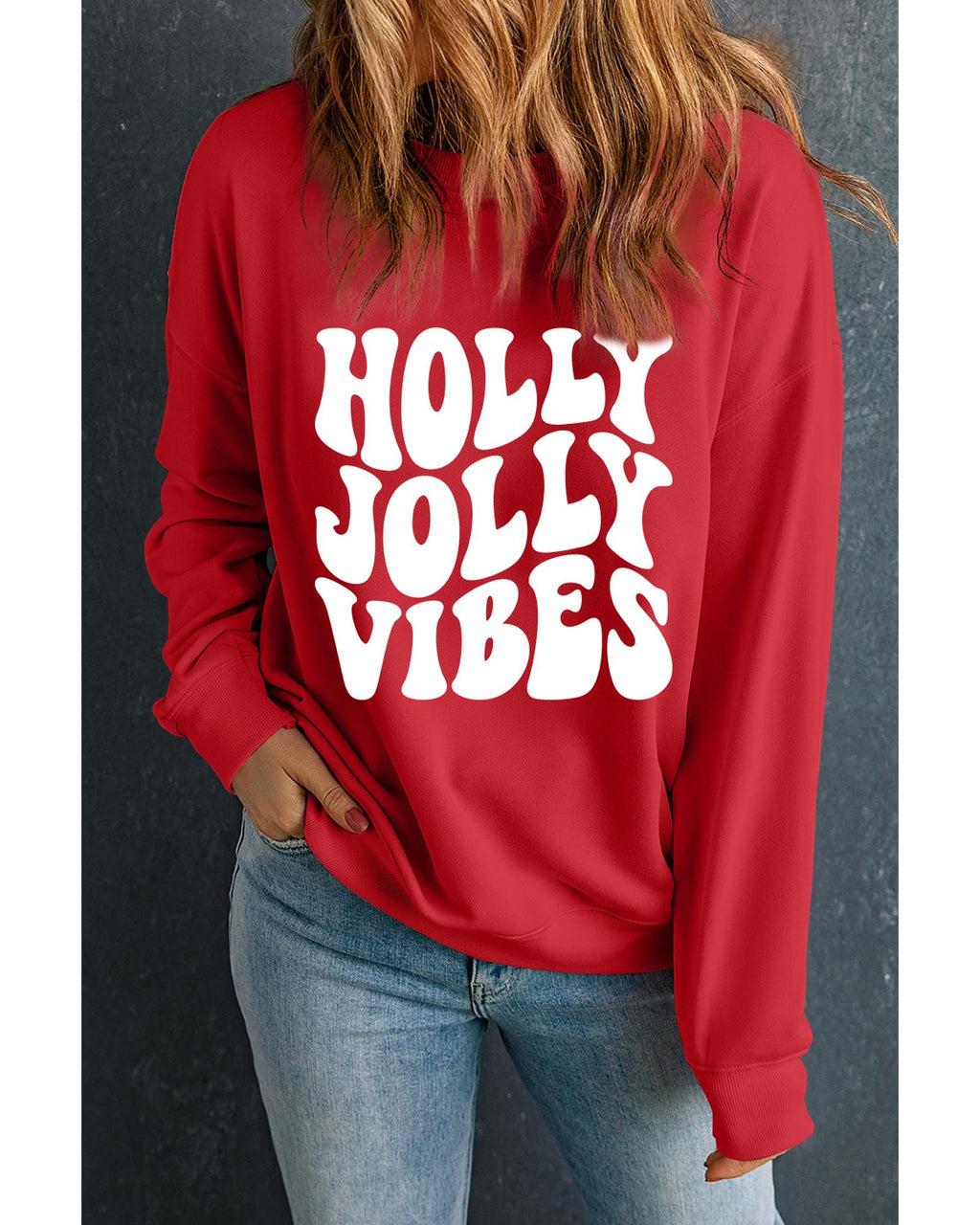 • Red HOLLY JOLLY VIBES Graphic Crewneck Christmas Sweatshirt