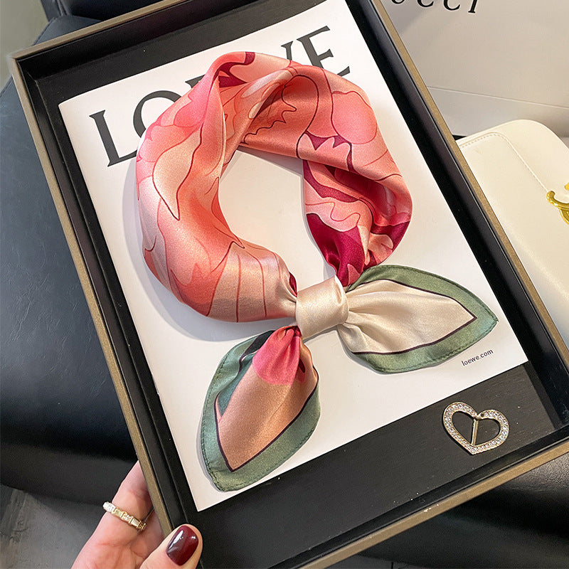 Perfect as a neck scarf, headscarf, or accessory for your bag, this versatile silk scarf is a must-have addition to any woman's wardrobe. It also makes a thoughtful and stylish gift for any special occasion.