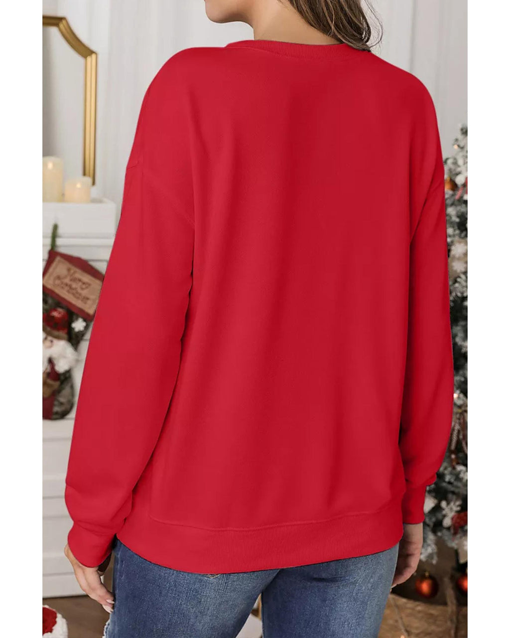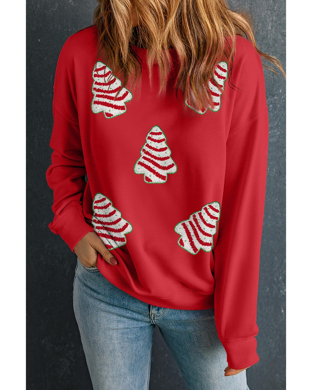 Red Playful Christmas Tree Patched Dropped Shoulder Sweatshirt - M