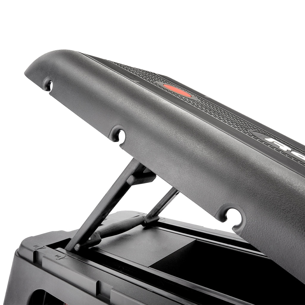 Resistance tube attachment points on the base and backrest provide more exercise options