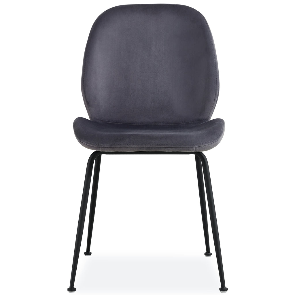 This set of 8-piece dining chairs make your dining area look beautiful. Designed in the Scandinavian style, the chairs are upholstered in Roma velvet fabric and have strong, tapered, black legs made of black powder-coated steel. A soft back makes it even more comfortable, giving them a unique look. The chairs look stunning in all decor settings, thanks to their inviting shape and charcoal-coloured fabric upholstery. A metal frame gives them great strength. A one-year warranty is included with the fully assembled chairs.
