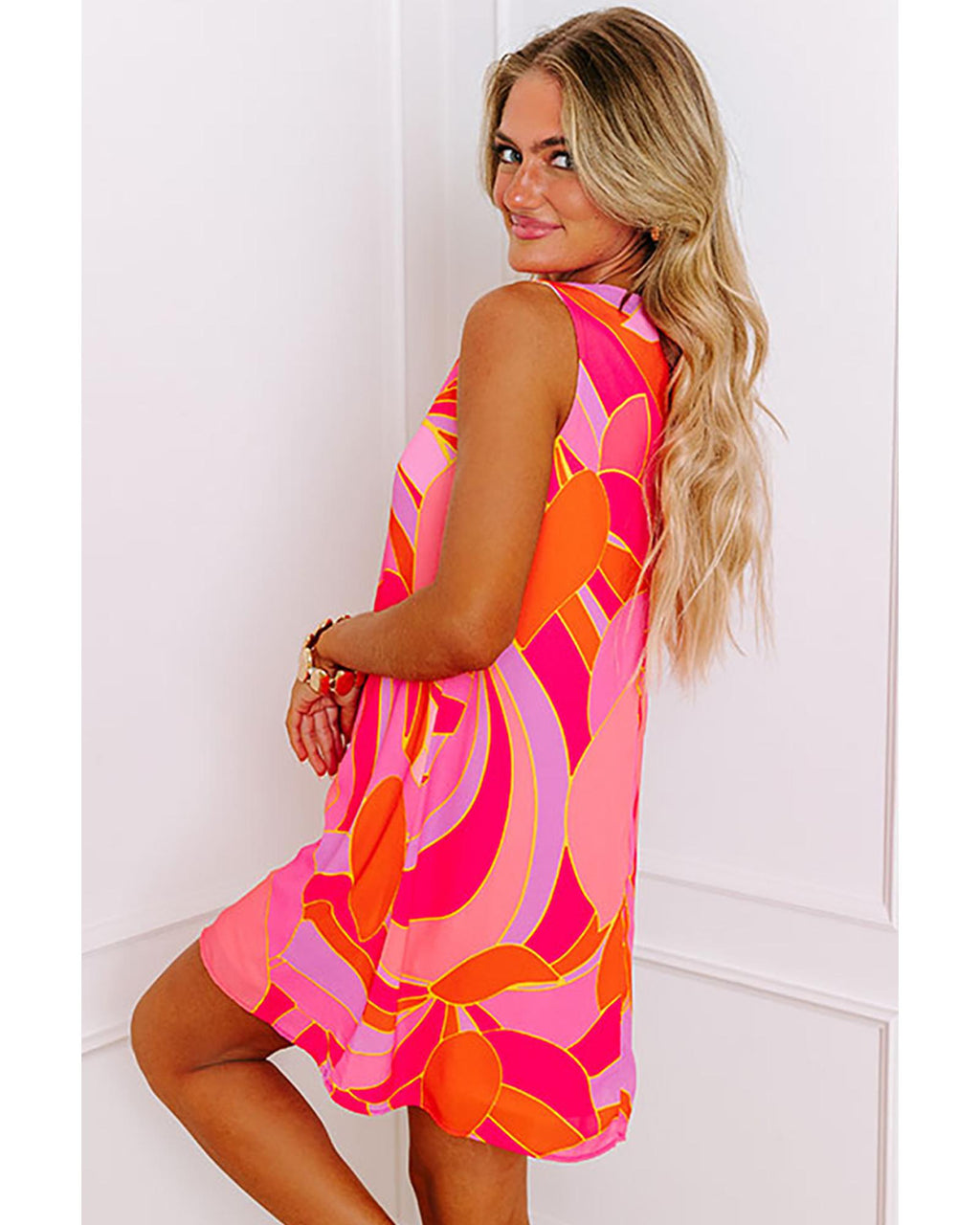 • Rose Abstract Floral Print Sleeveless Shift Mini Dress