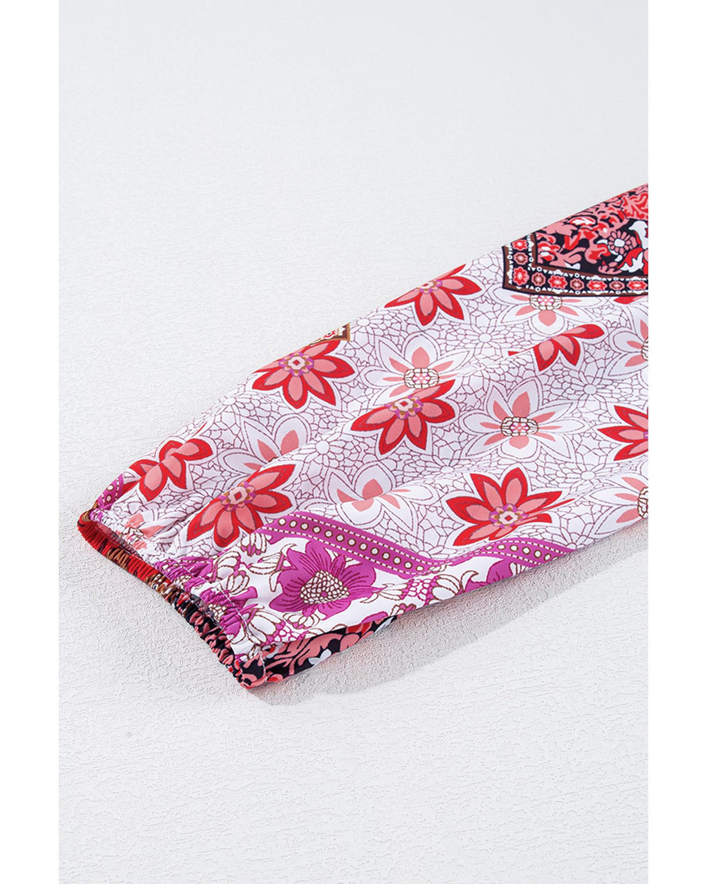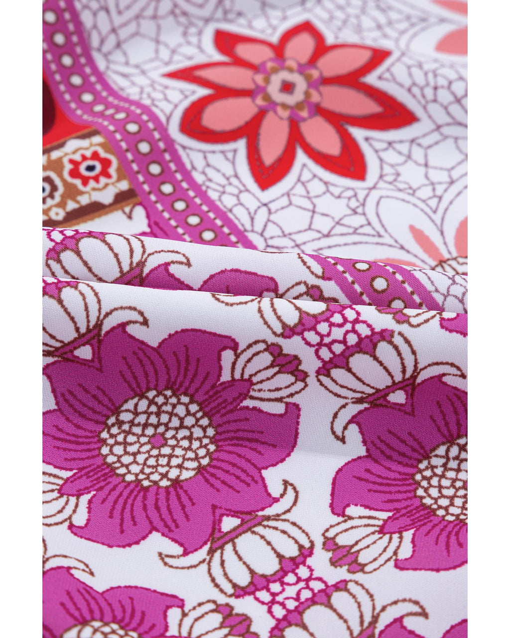 Rose Mixed Floral Long Sleeve V Neck Lace-up Hollowed Back Plus Size Dress - 3X