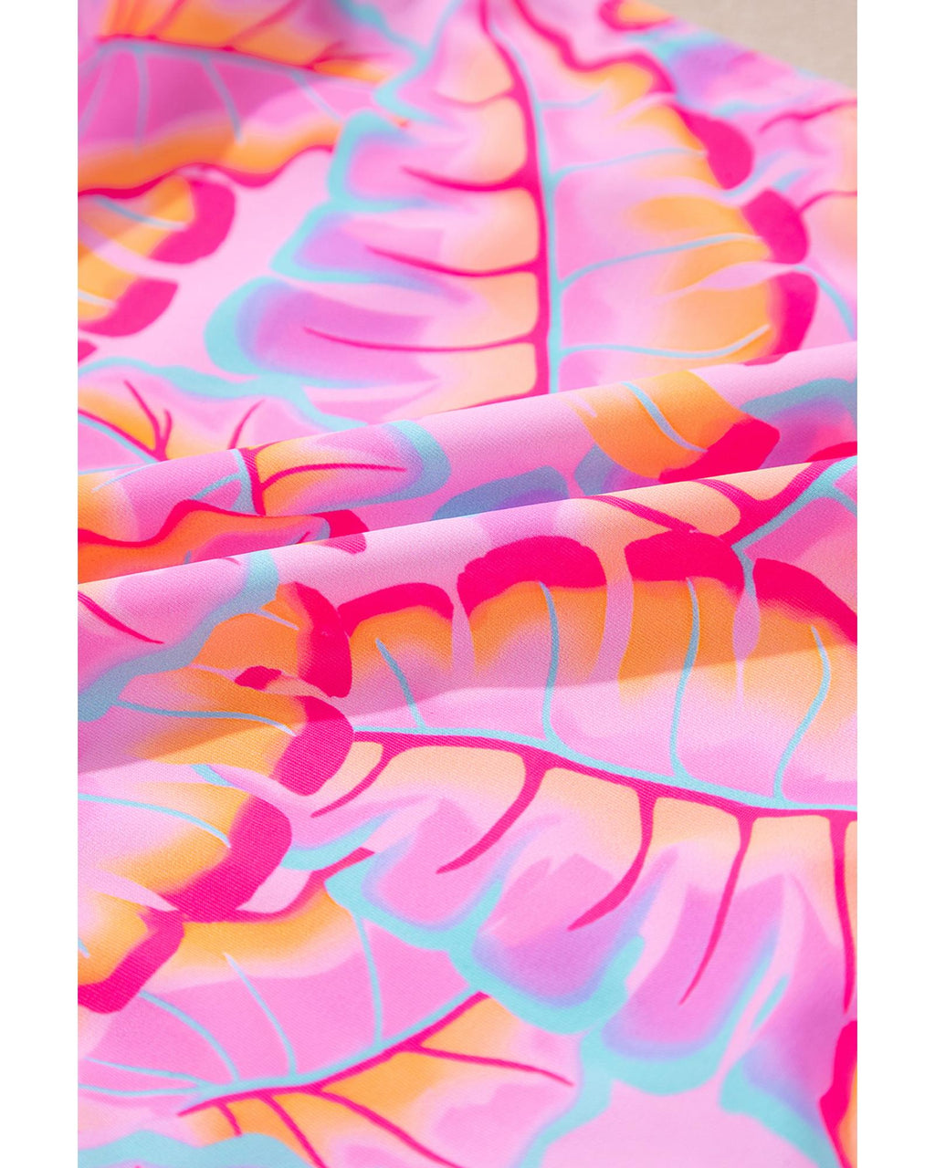 Rose O-ring Joint Leafy Print High Waist Monokini - L