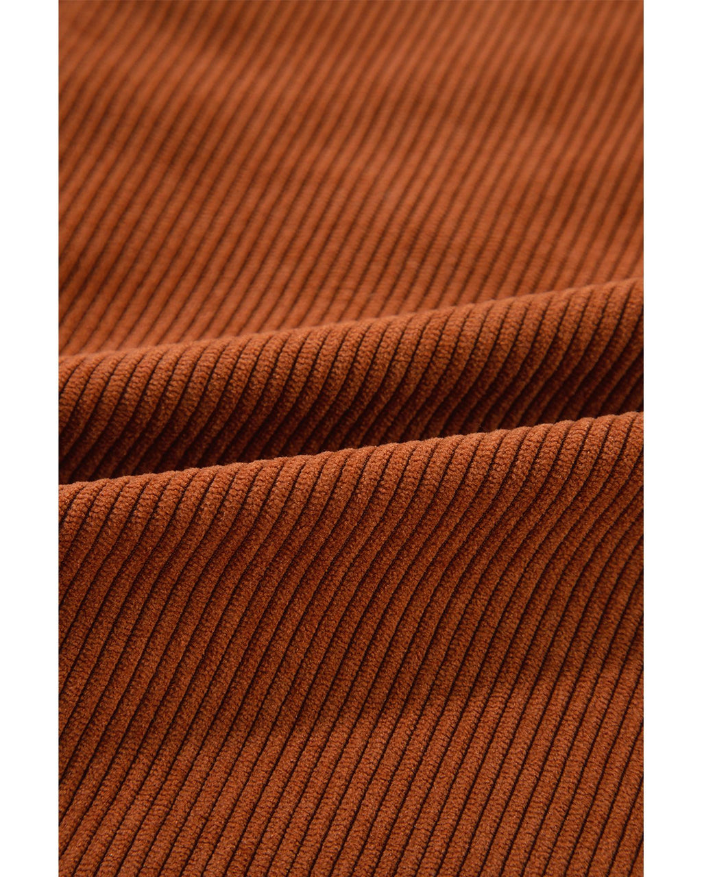 • Rose Red Colorblock Curved Hem Corduroy Shacket with Pocket