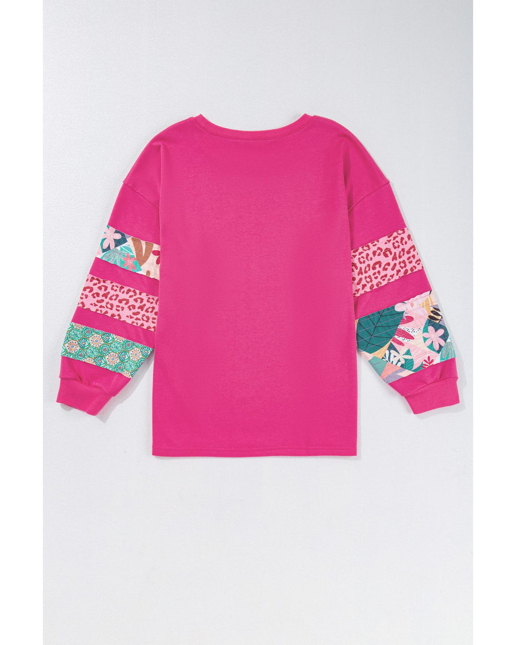 Rose Red Plus Size Printed Patchwork Sleeve Split Sweatshirt - 1X
