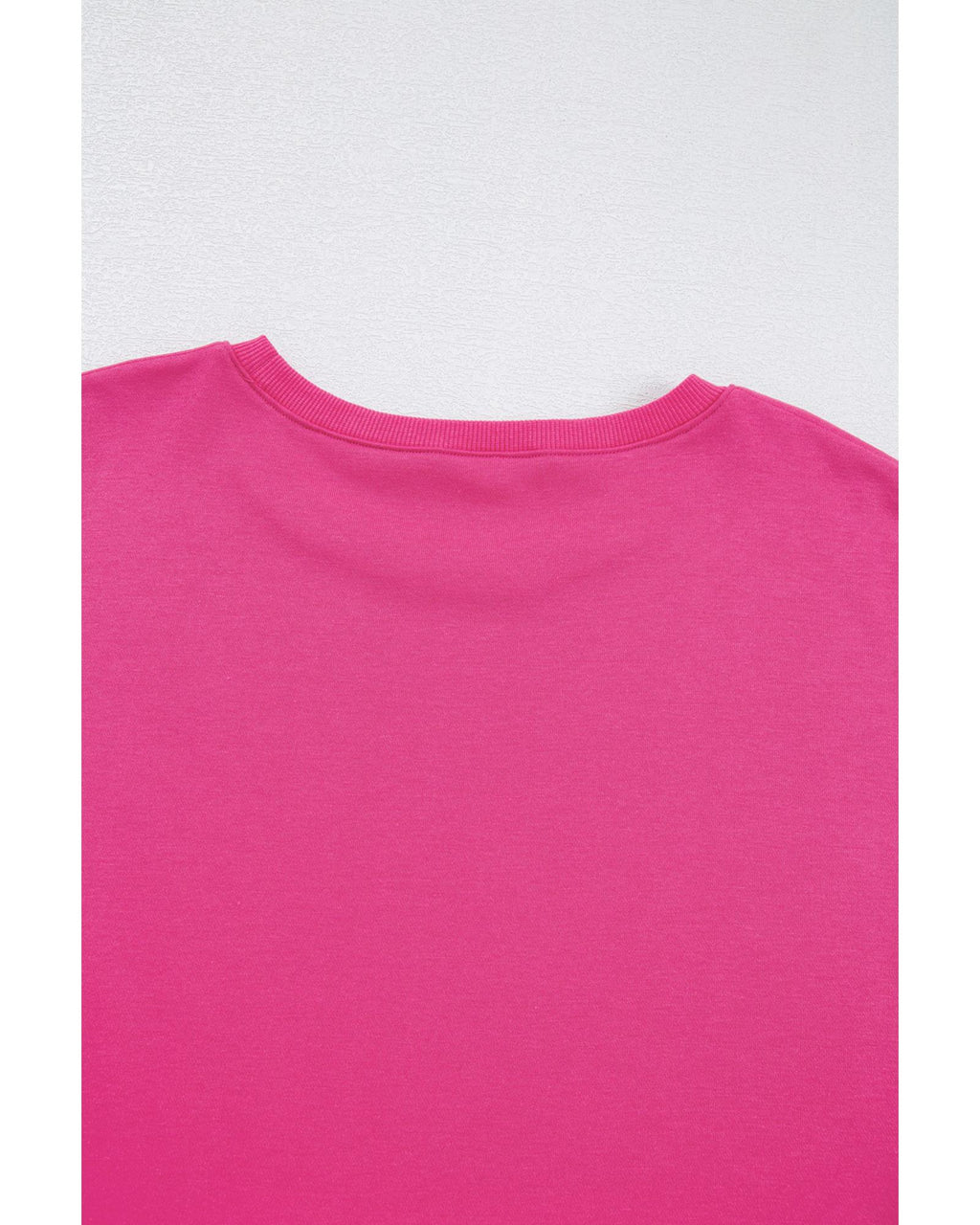 Rose Red Plus Size Printed Patchwork Sleeve Split Sweatshirt - 4X