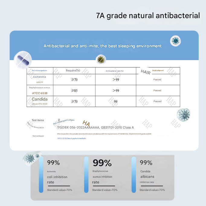 • Antibacterial: 7A level natural antibacterial properties