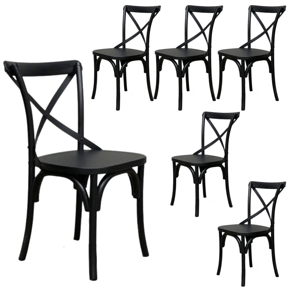 This gorgeous set of 6pc dining chairs adorns your dining area. Designed in the contemporary style, the chairs are in black, and they have strong legs. The chair frame and seat are made of Birchwood. A cross back in classy design gives them a cool look. Their legs are made of metal in Matt Black colour. The chairs look stunning in all decor settings, thanks to their inviting shape and colour. A one-year warranty is included with the fully assembled chairs.