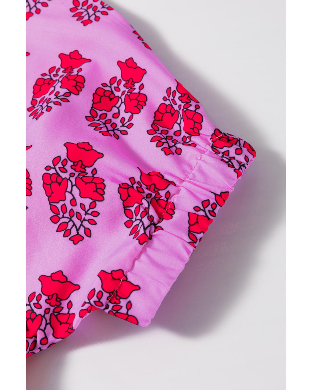 • Sachet Pink Floral Print Multi Buttons Collared Short Sleeve Flowy Dress