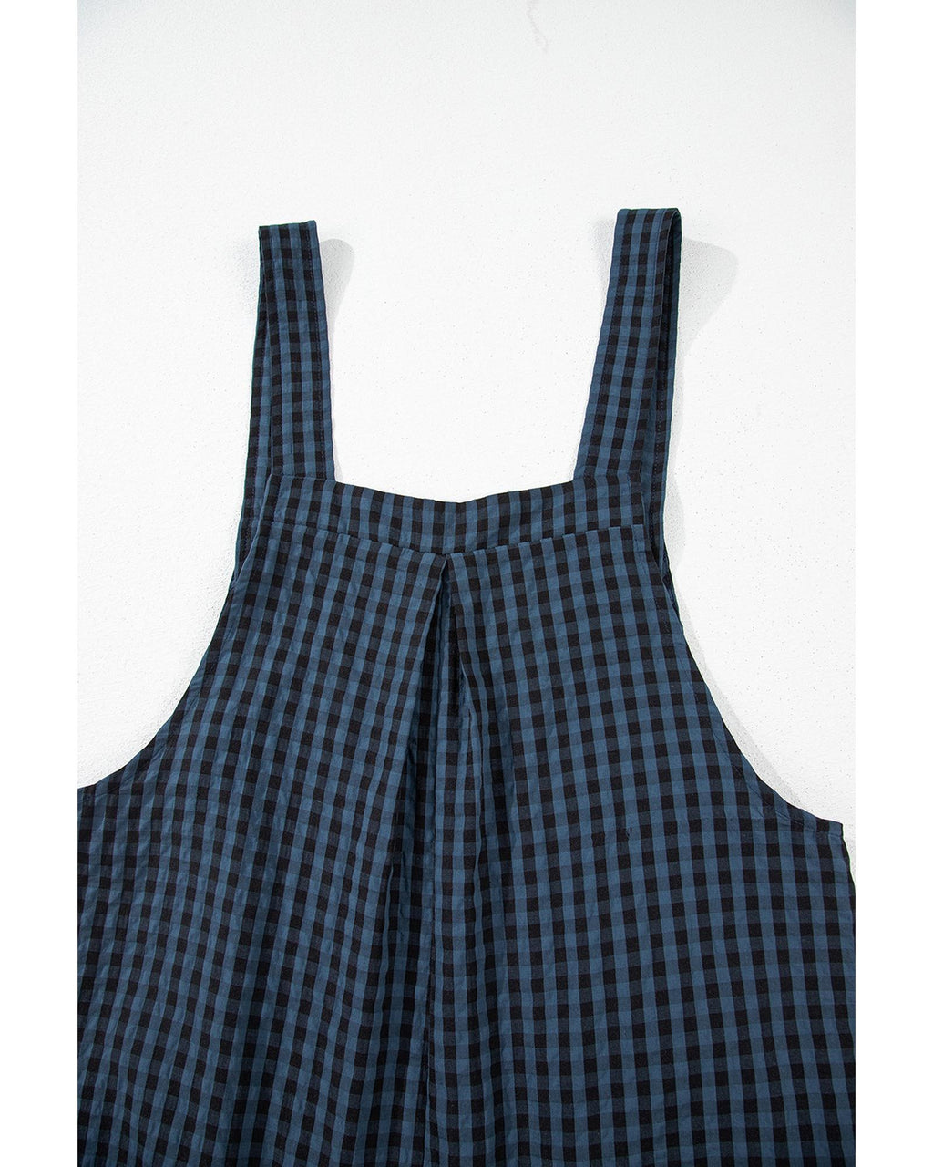 Sail Blue Plaid Print Buttoned Pocketed High Waist Overall - S