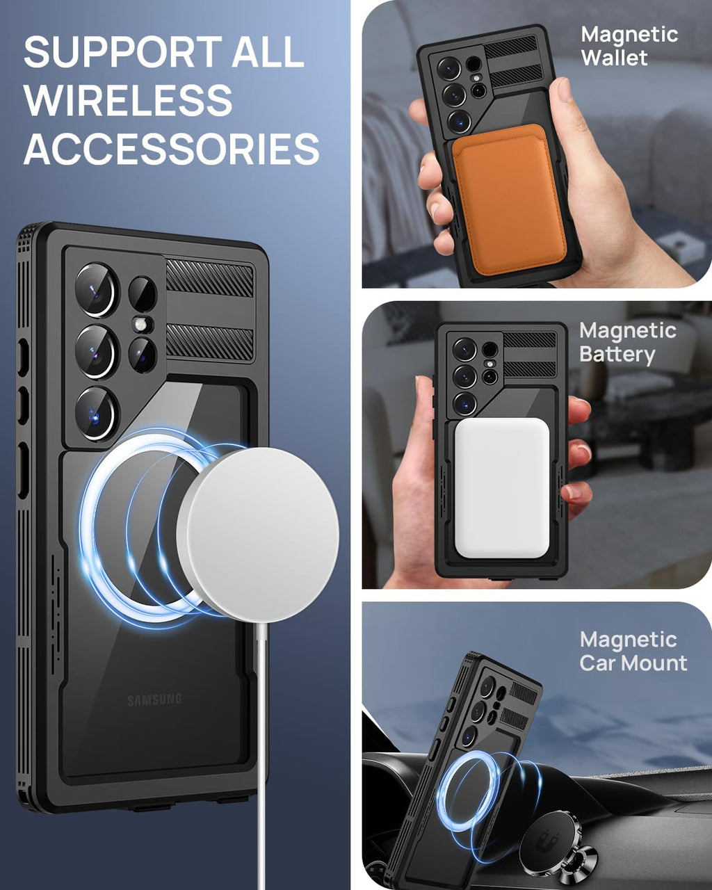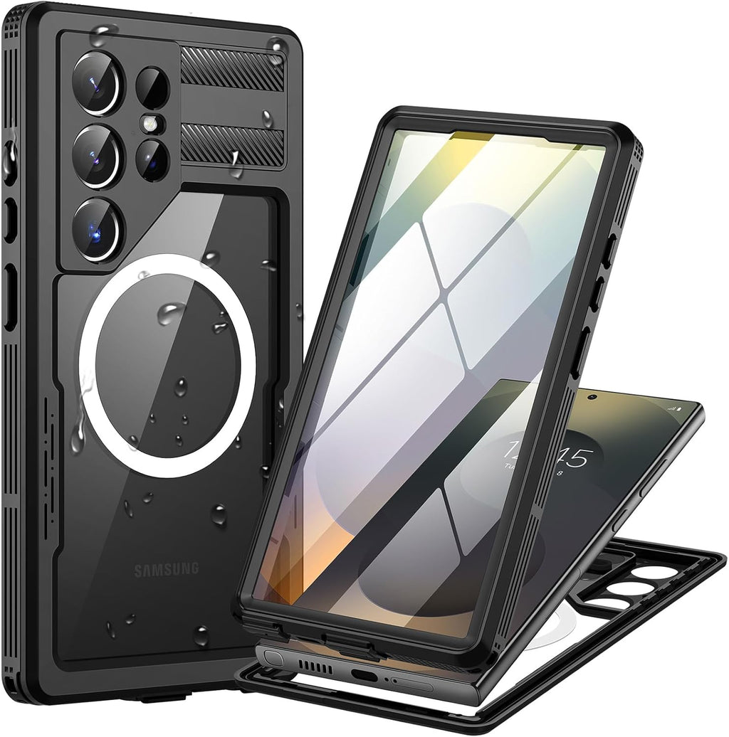 • ? [IP68 Waterproof] This Samsung Galaxy S25 Ultra Case is IP68 Waterproof Certified, submerged to 10ft/3 m for 1 hour,and is protected from dust,dirt,water,snow and rain. The whole body protection design allows you to take photos/videos underwater. In addition, the washable design ensures its easy cleaning and keeps your phone and case always look like new, protect your phone from scratches and fading